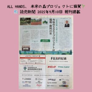 ALL HANDSは、読売新聞の2025年9月10日朝刊に掲載された「九州・山口エリアのSDGs広告特集」に、スポンサー企業として協賛いたしました。