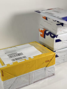 発送指示を受けたら、保管中の商品をピックアップし、管理番号の付与・画像確認・入庫、検品、丁寧な梱包を経て、最適な配送業者(FedEx、DHLなど)で迅速にお届けいたします。